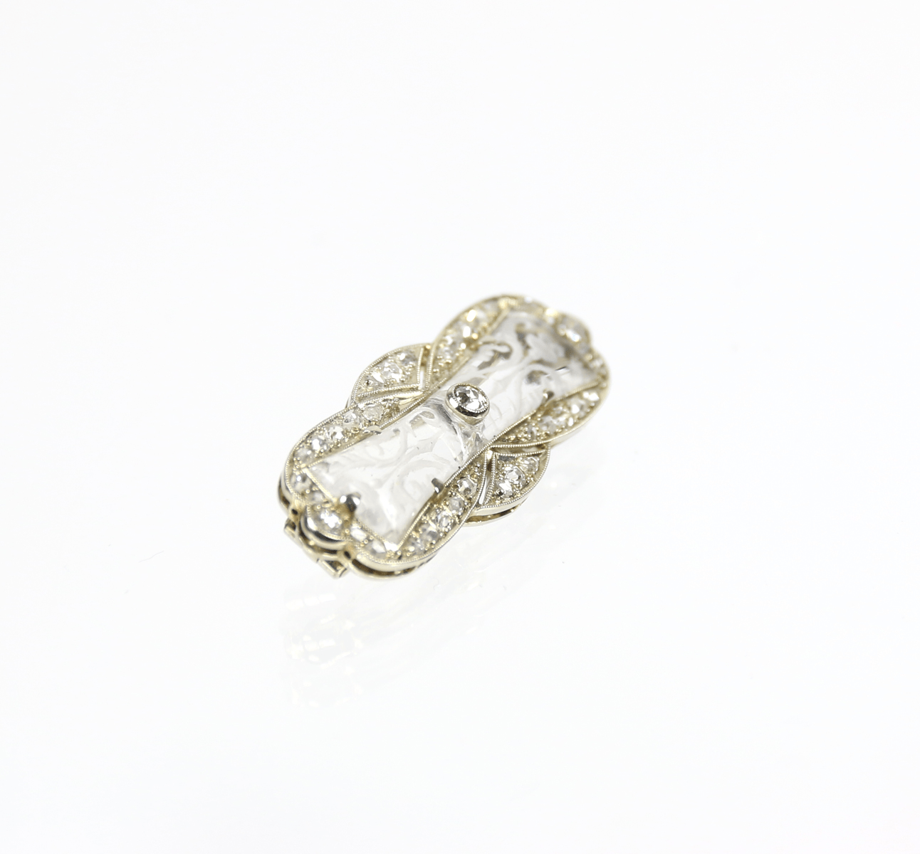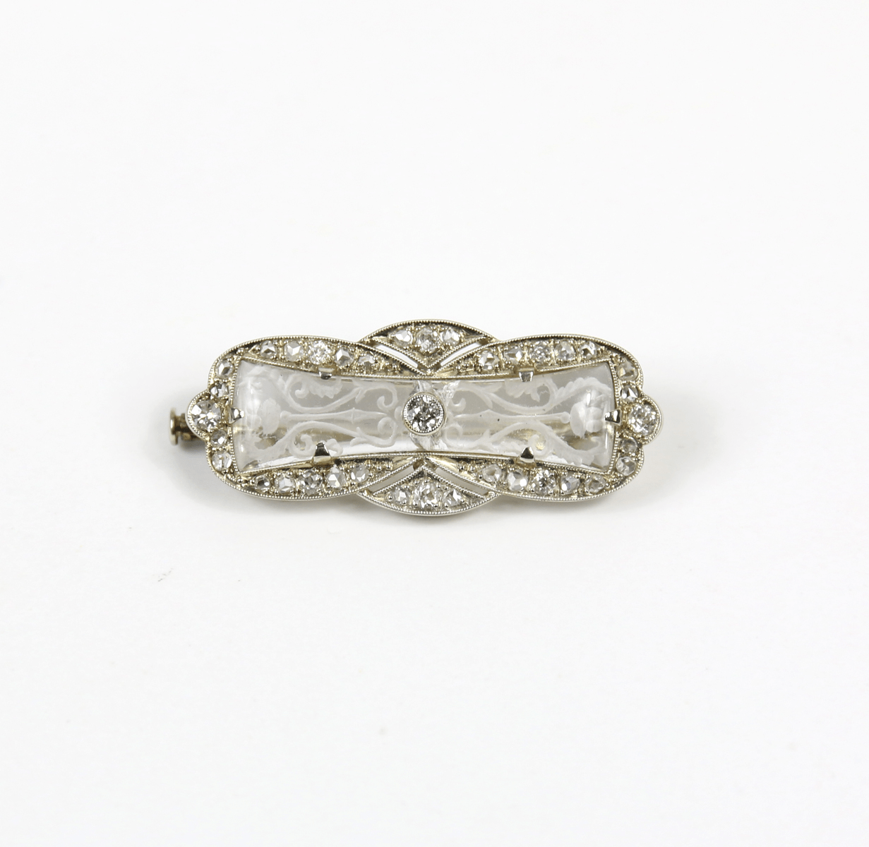 Start » Shop » Schmuck » Broschen » 585/Antike Weißgold Brosche mit Altschliffdiamanten und Bleikristall