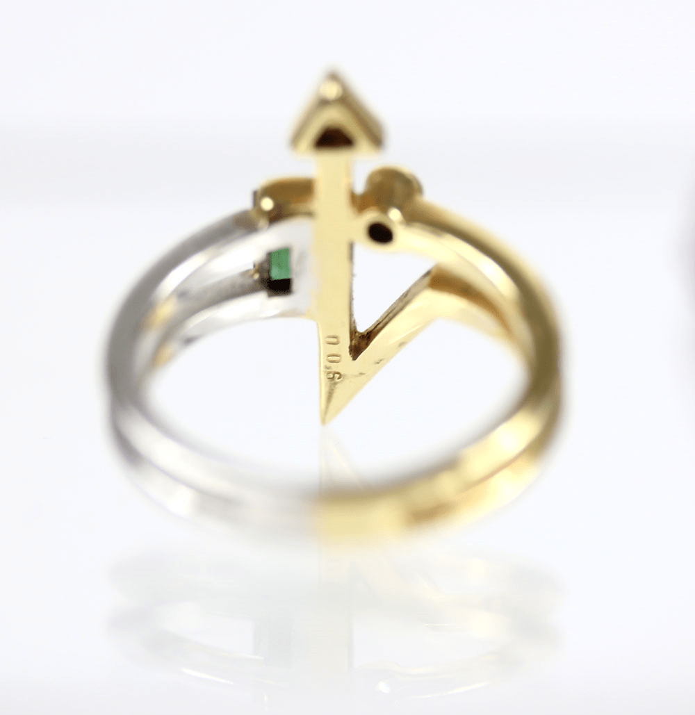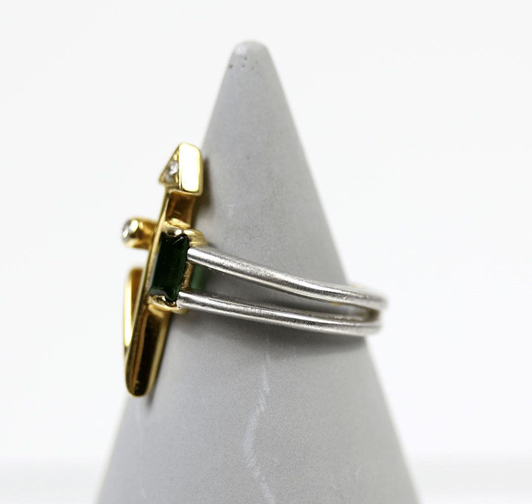 Start » Shop » Schmuck » Ringe » 585/Bicolor Ring mit zwei kleinen Brillanten zus. ca. 0,06ct. (grav.) und grünem Farbstein