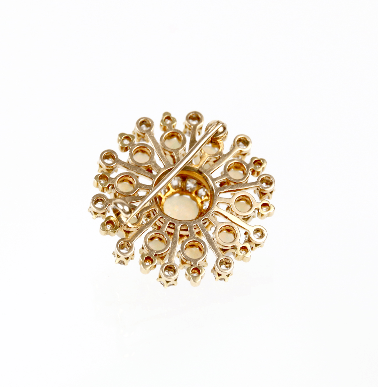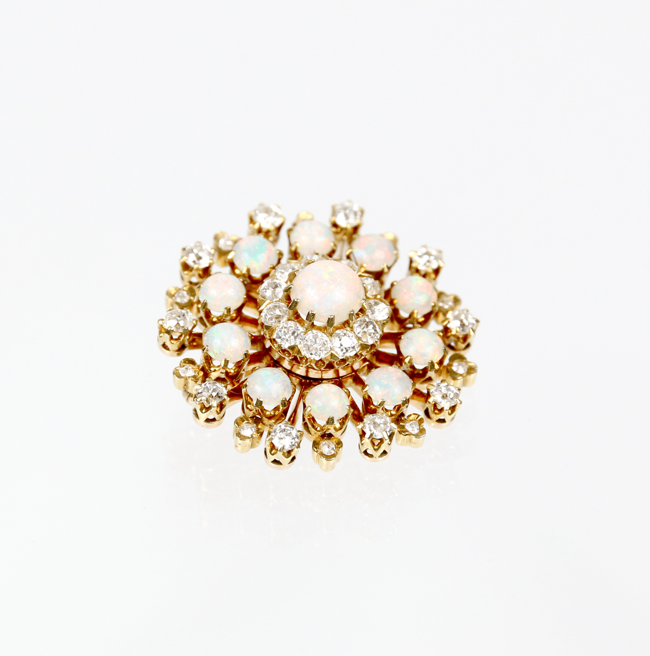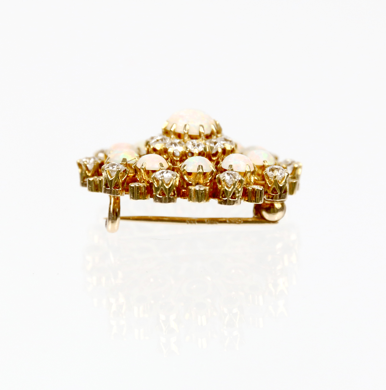 585/Brosche Gelbgold mit 11 Opalen und Diamanten-Besatz zus. ca. 1,2ct.
