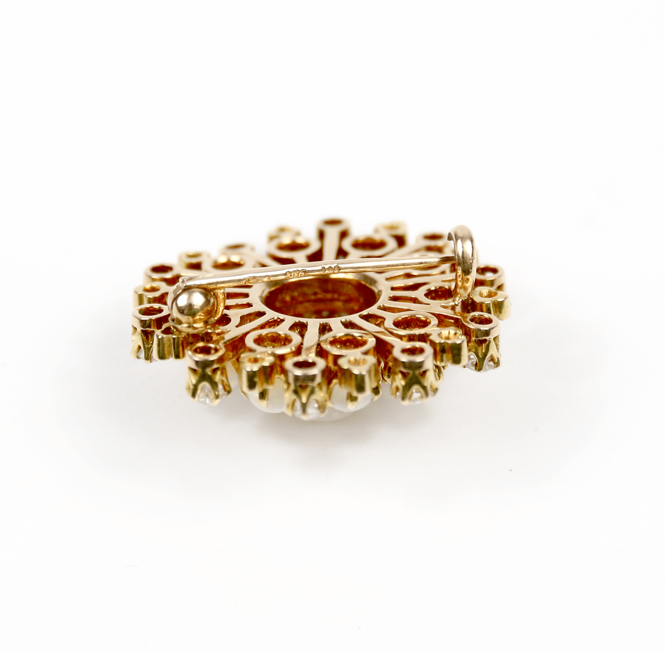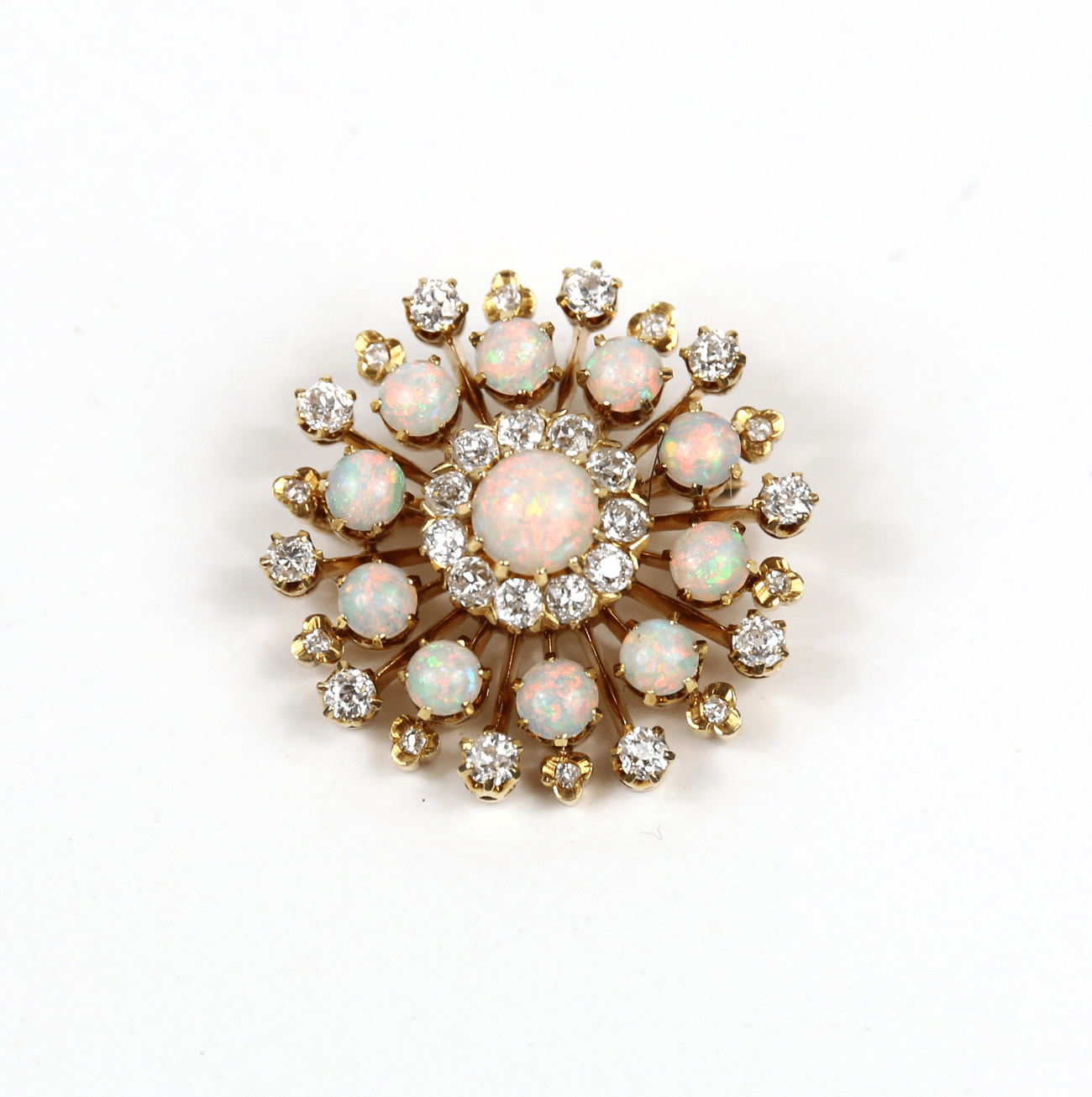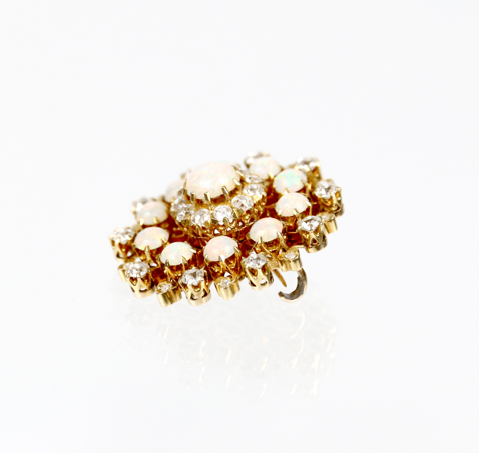 585/Brosche Gelbgold mit 11 Opalen und Diamanten-Besatz zus. ca. 1,2ct.