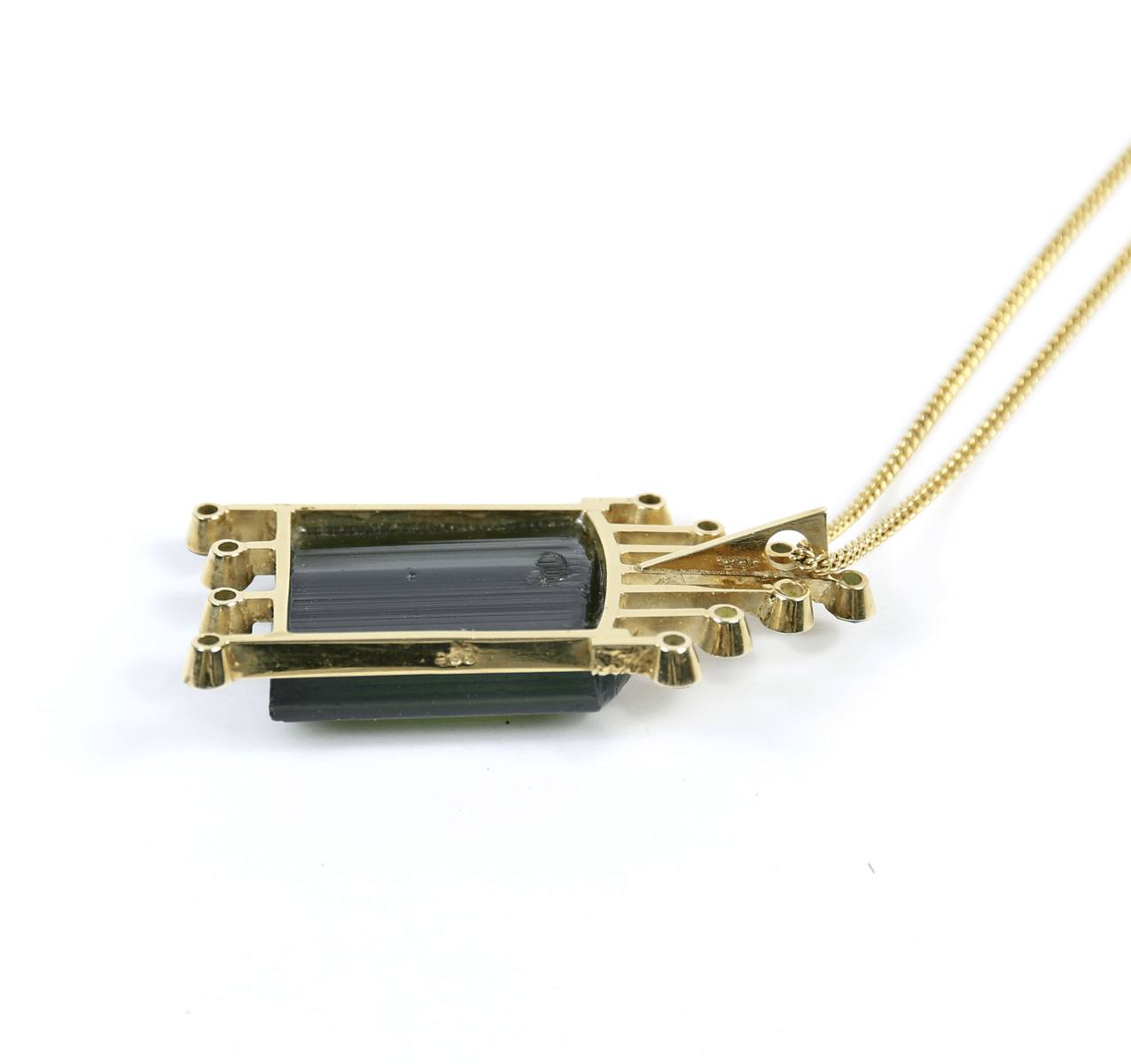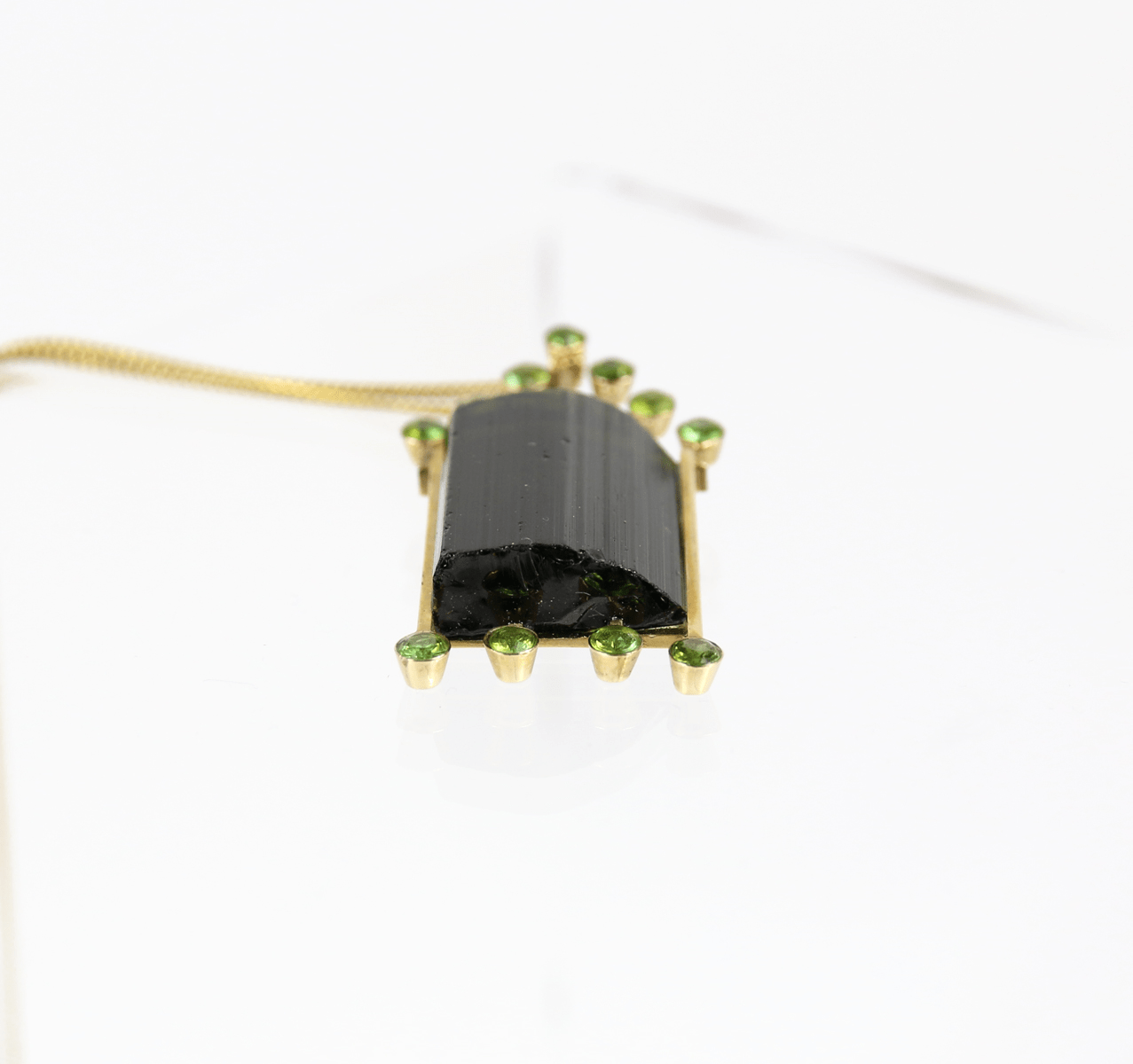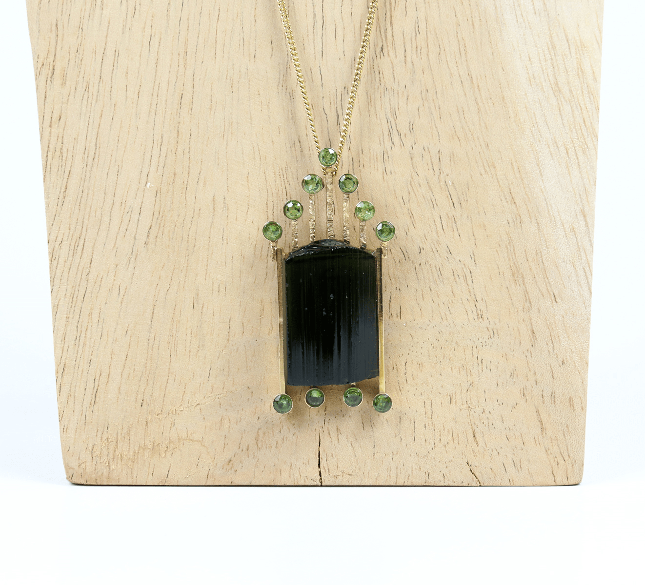 Start » Shop » Schmuck » Ketten & Colliers » 585/Gelbgold Kette mit Anhänger und Moldavit, Handarbeit