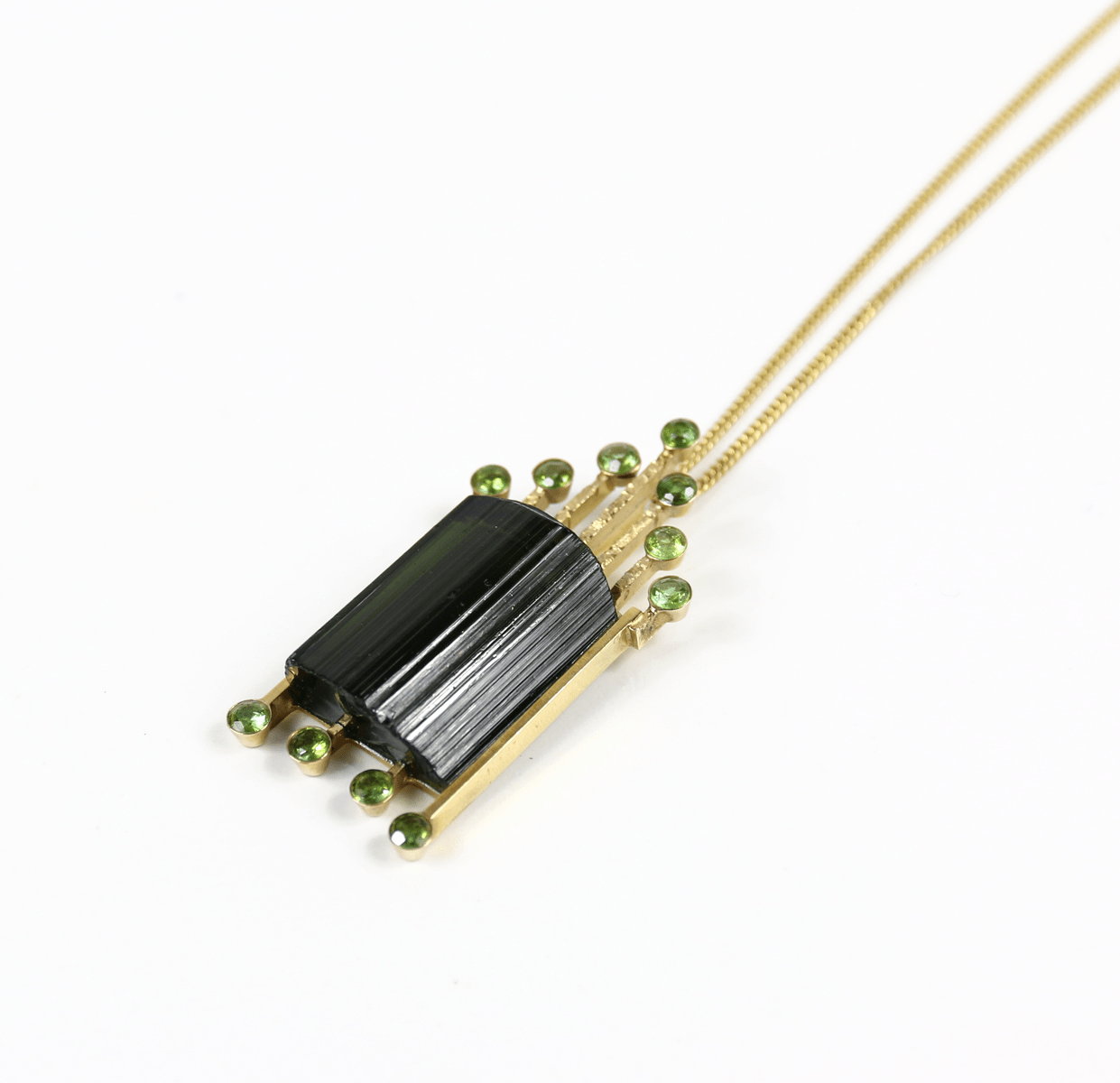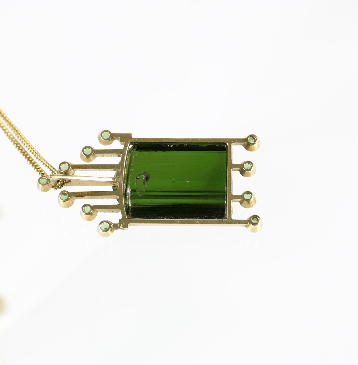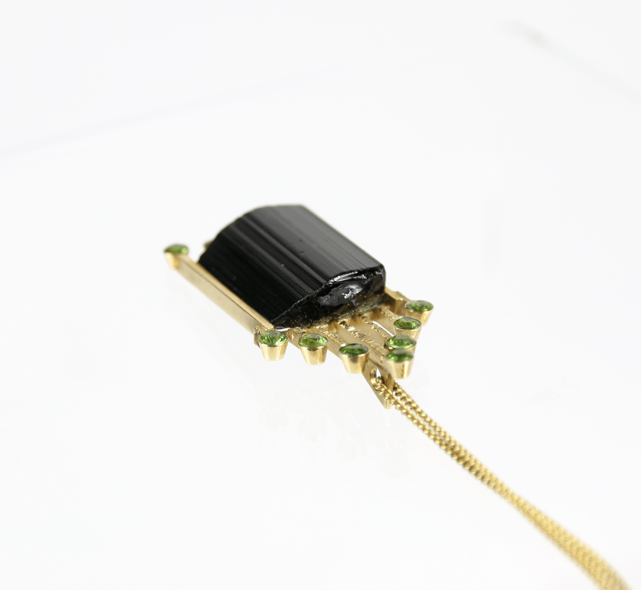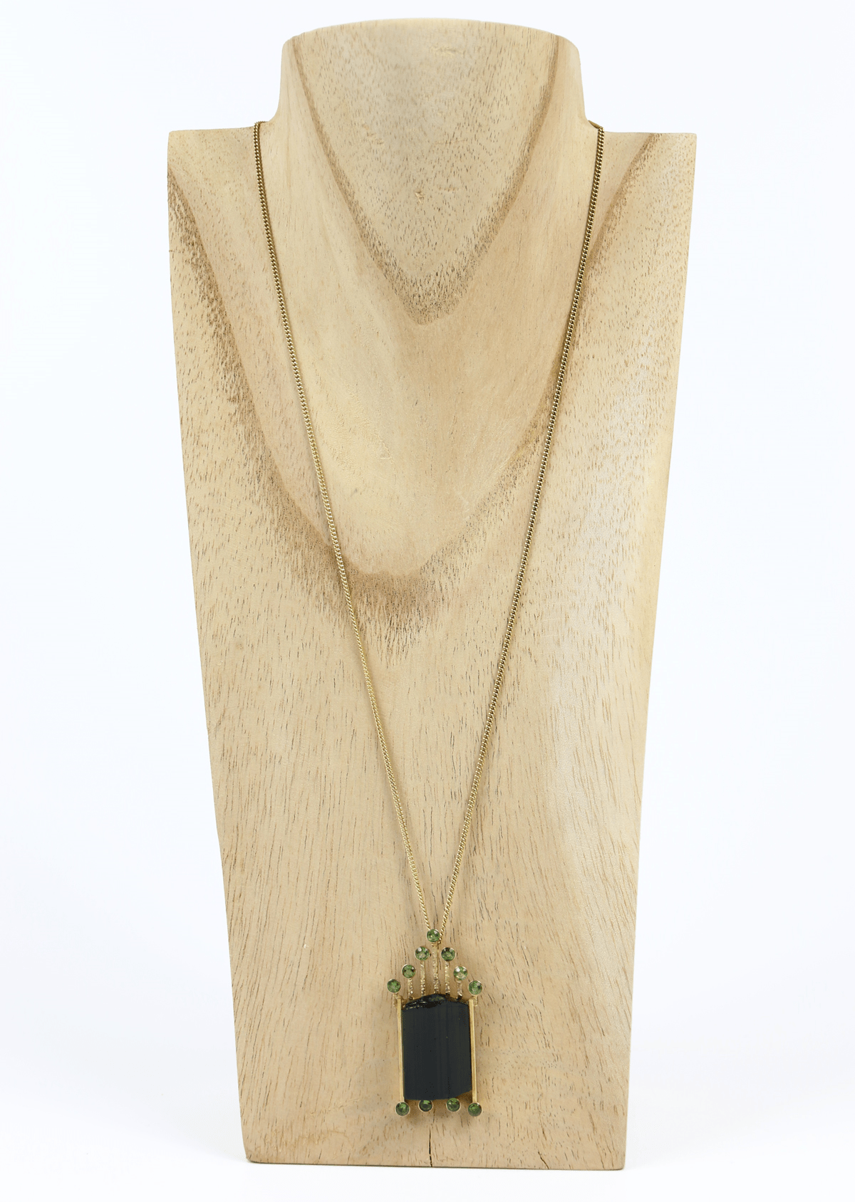 Start » Shop » Schmuck » Ketten & Colliers » 585/Gelbgold Kette mit Anhänger und Moldavit, Handarbeit