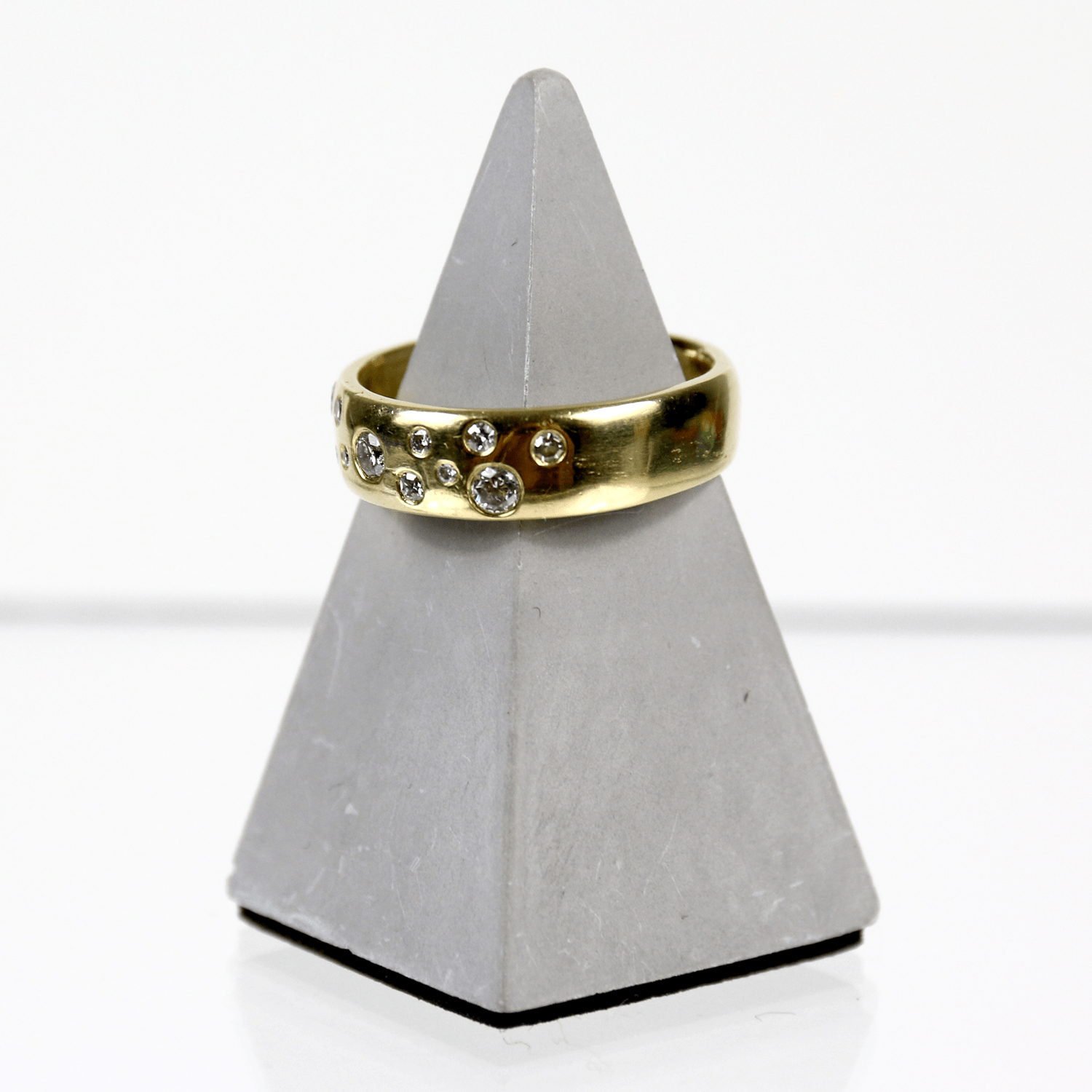 585/Gelbgold Ring mit Brillanten und Diamanten versch. Qualität max. 0,1ct. – Ringschiene oval