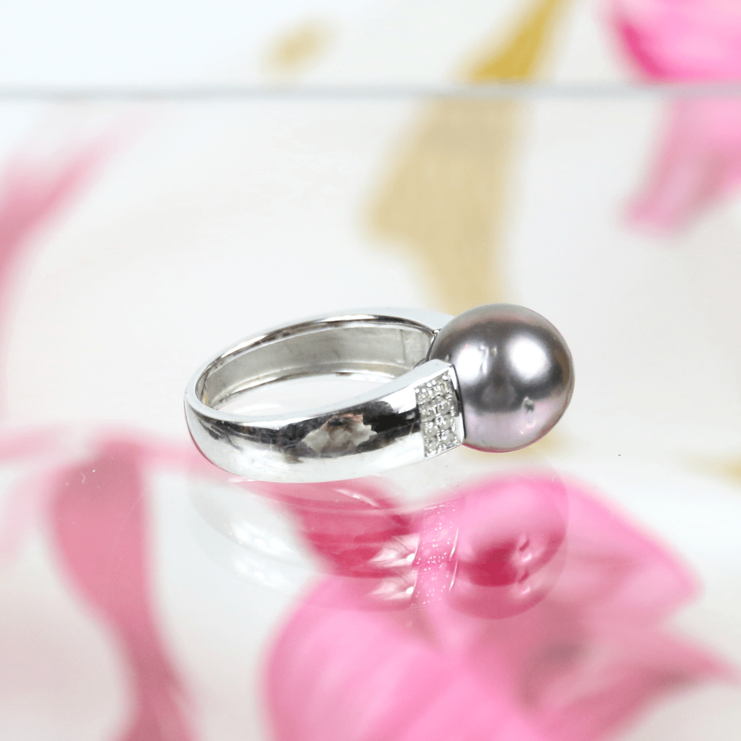 Start » Shop » Schmuck » Ringe » 585/Weißgold Ring mit grauer Zuchtperle und 16 Brillanten