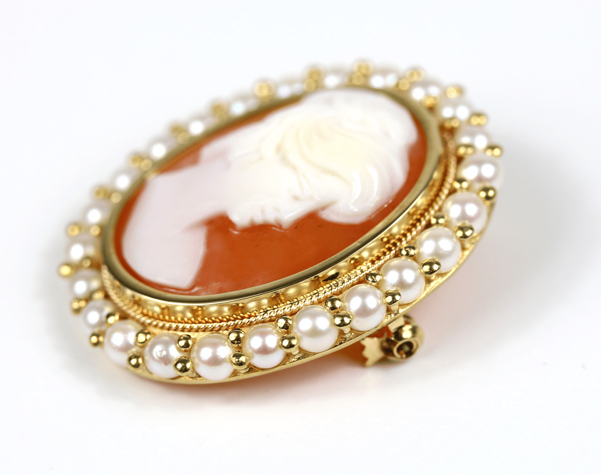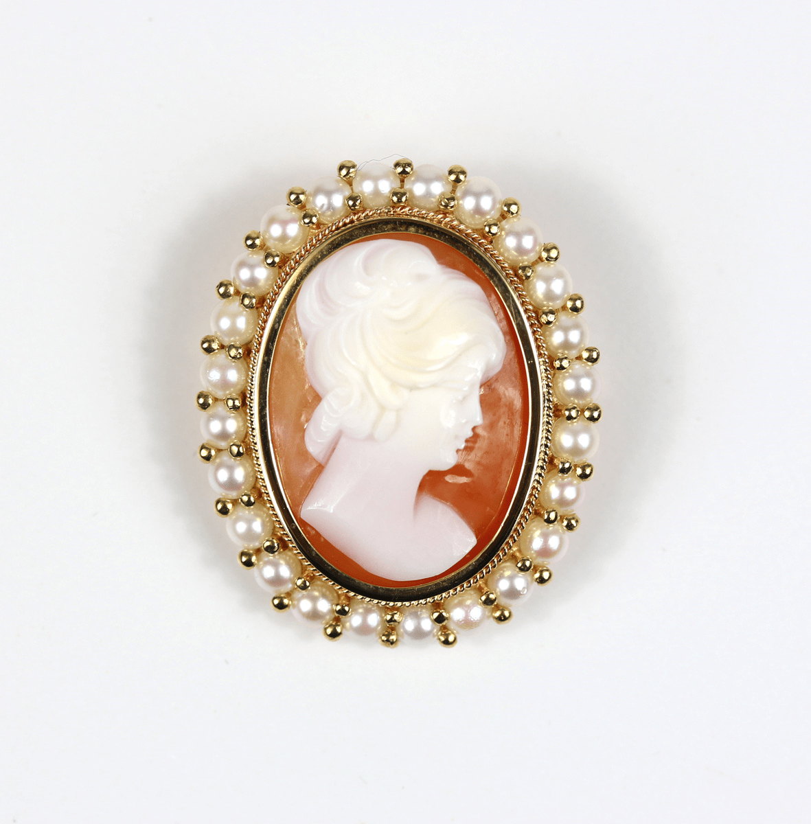 Start » Shop » Schmuck » Anhänger » 750/Anhänger oder Brosche mit Muschelgemme und kleinen Zuchtperlen, Gelbgold-Fassung