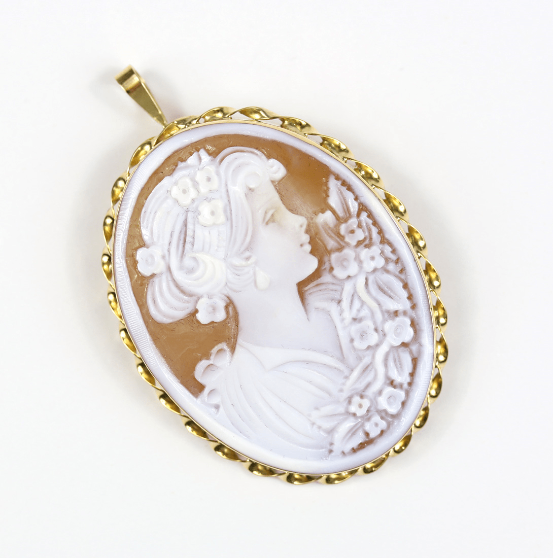 Start » Shop » Schmuck » Anhänger » 750/Anhänger und Brosche mit Gemme/Kamée in Gelbgold-Fassung