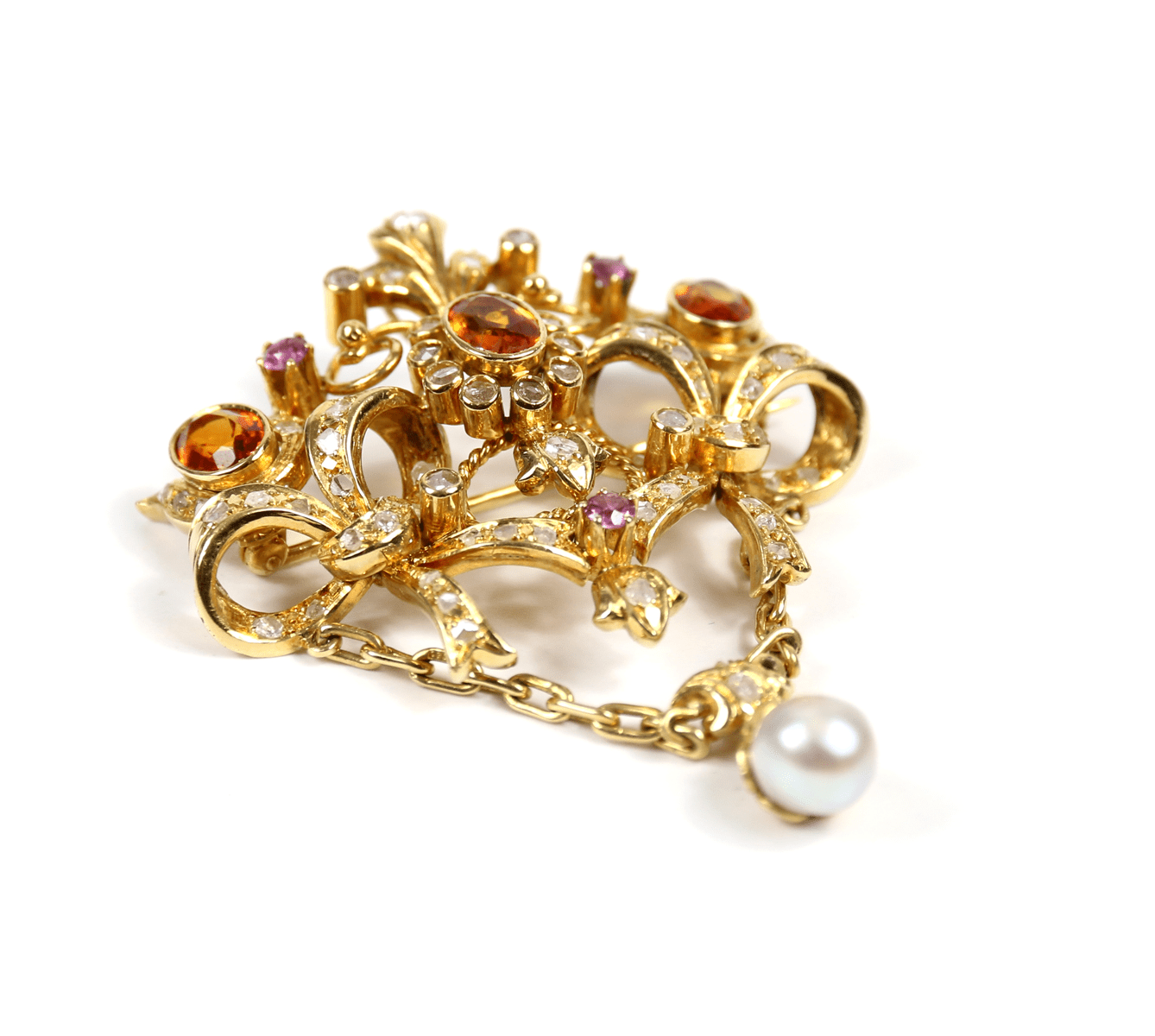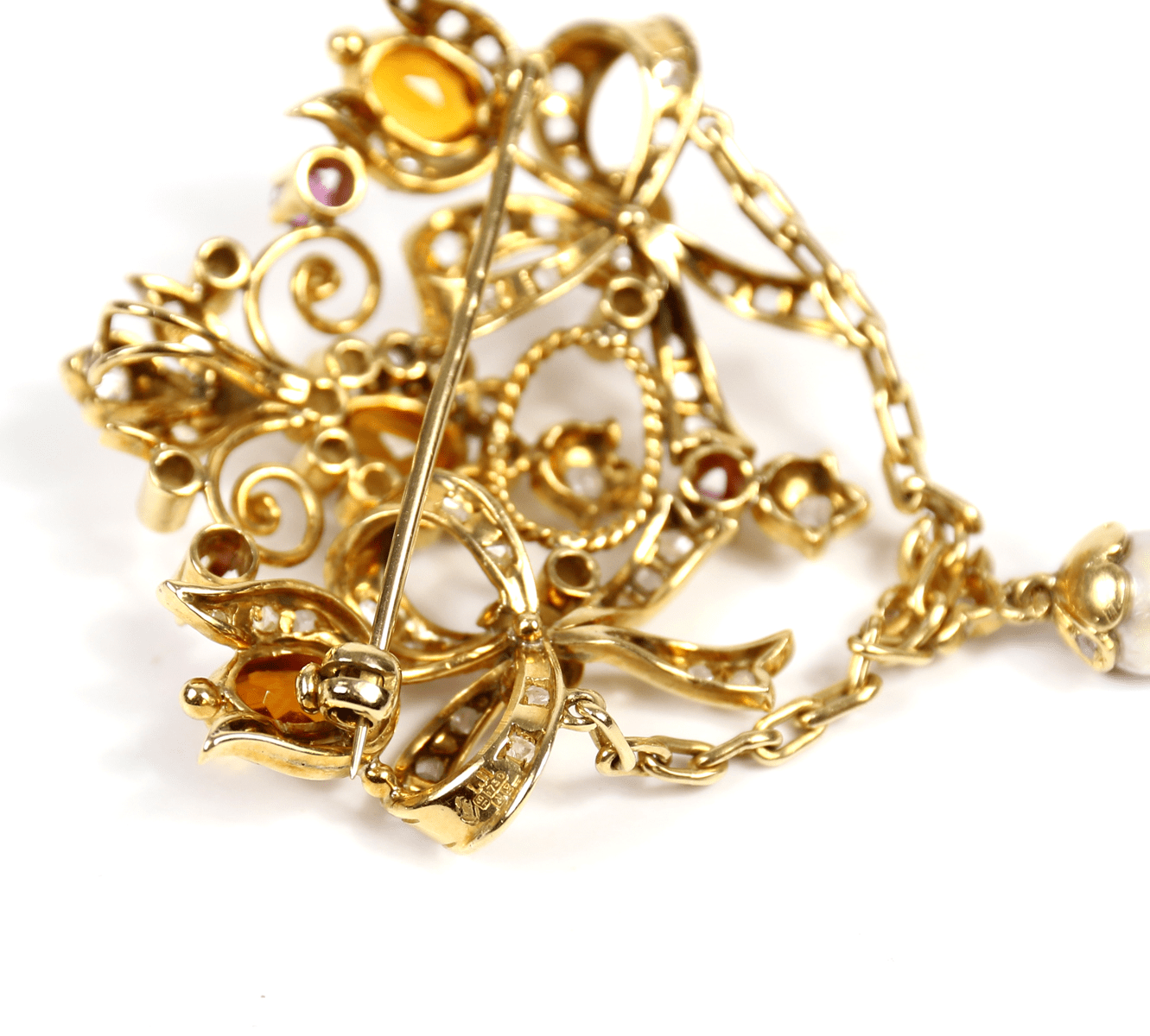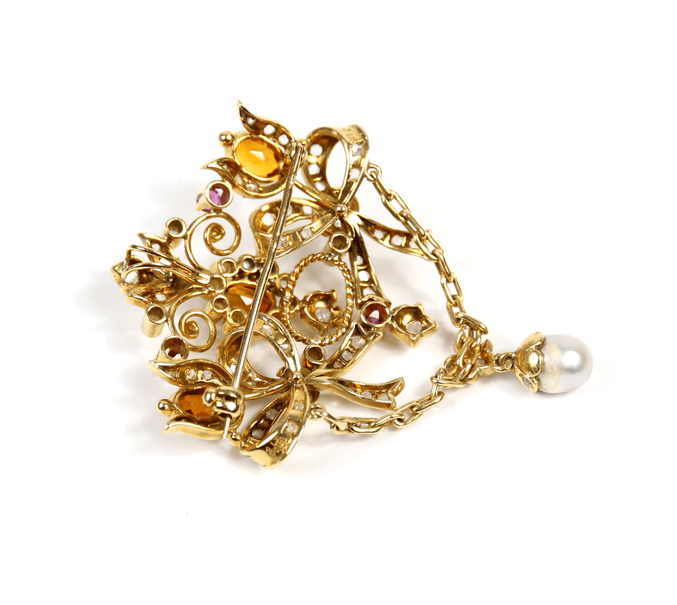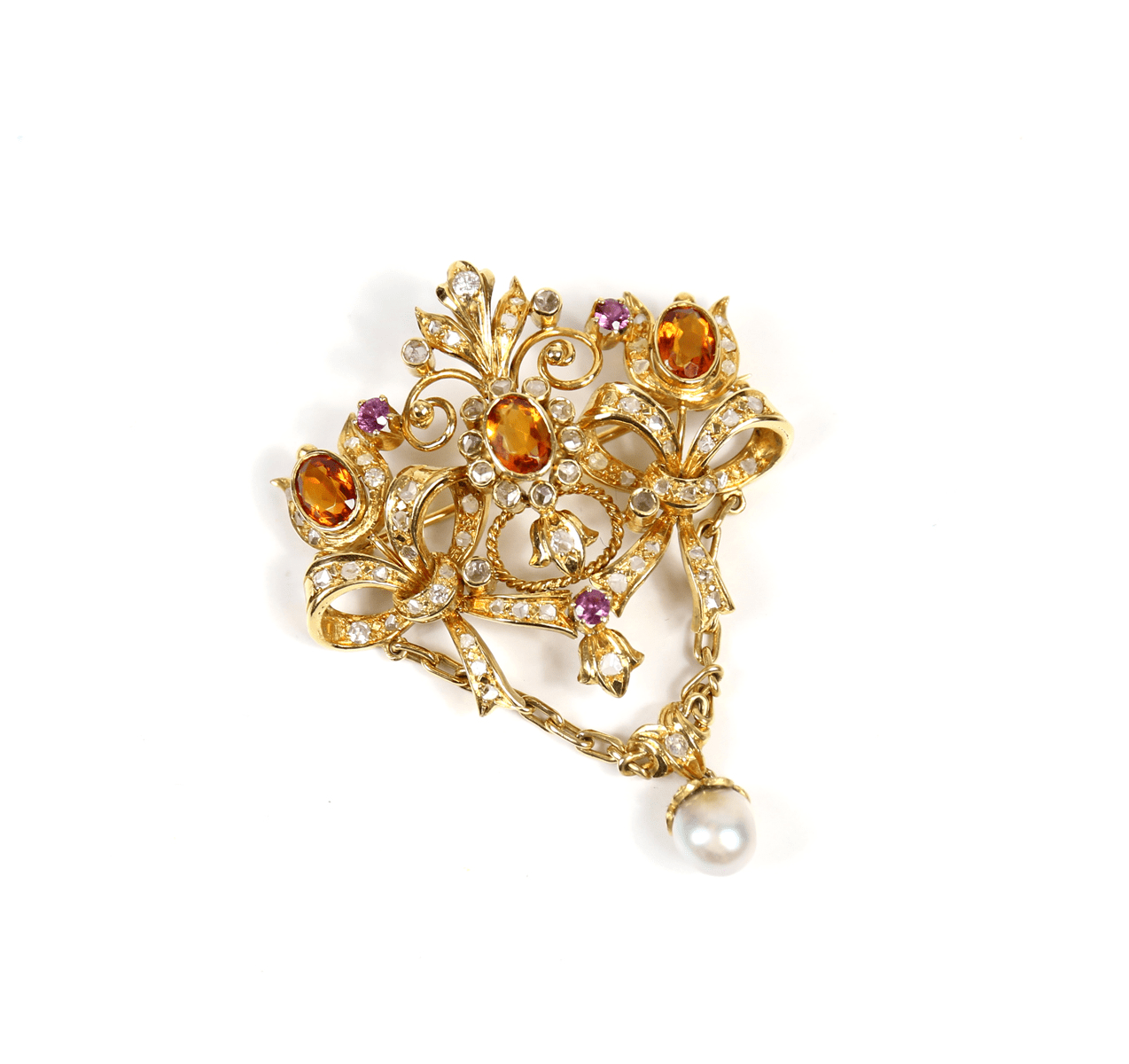 Start » Shop » Schmuck » Anhänger » 750/Gelbgold Brosche und Anhänger mit Diamantrosen und Brillanten, Topas, Amethyst und Perle