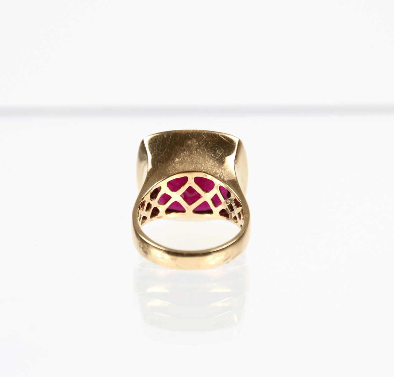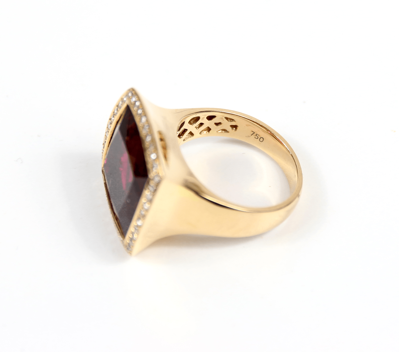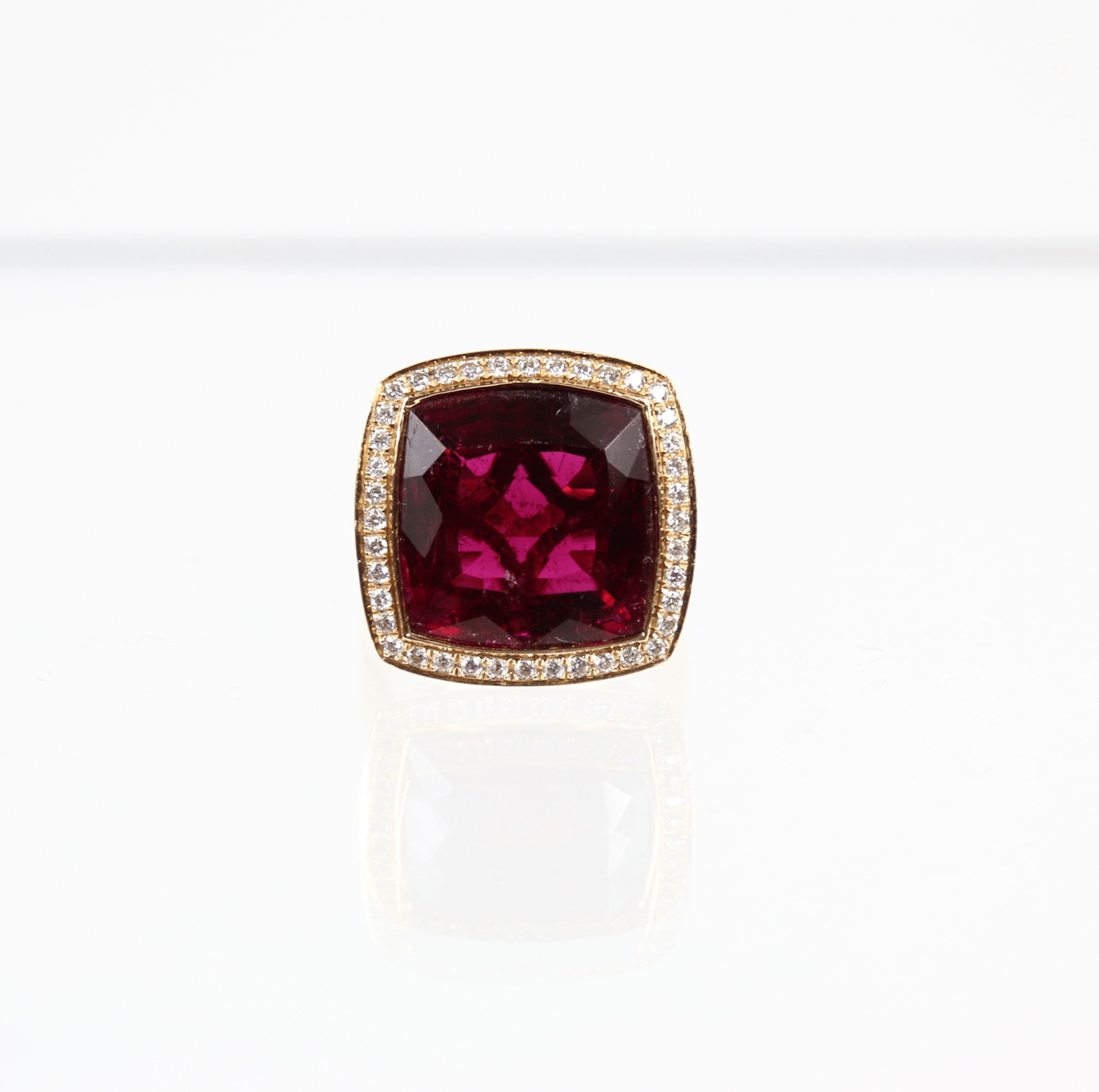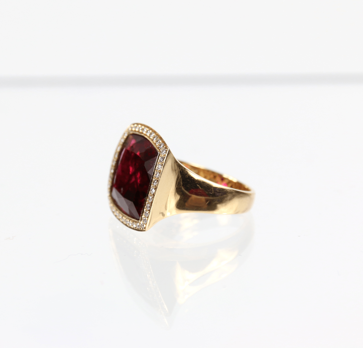 Start » Shop » Schmuck » Ringe » 750/Gelbgold Ring mit Rubelit ca. 8-10ct., eingefasst mit Brillanten zus. ca. 0,4 – 0,5ct.