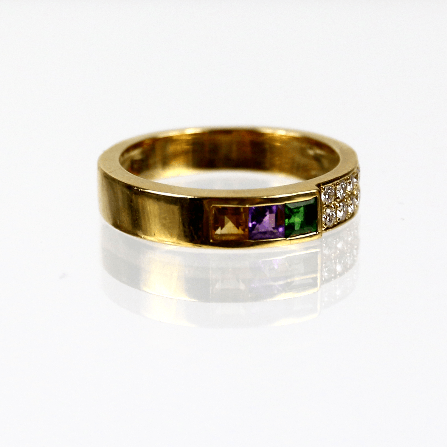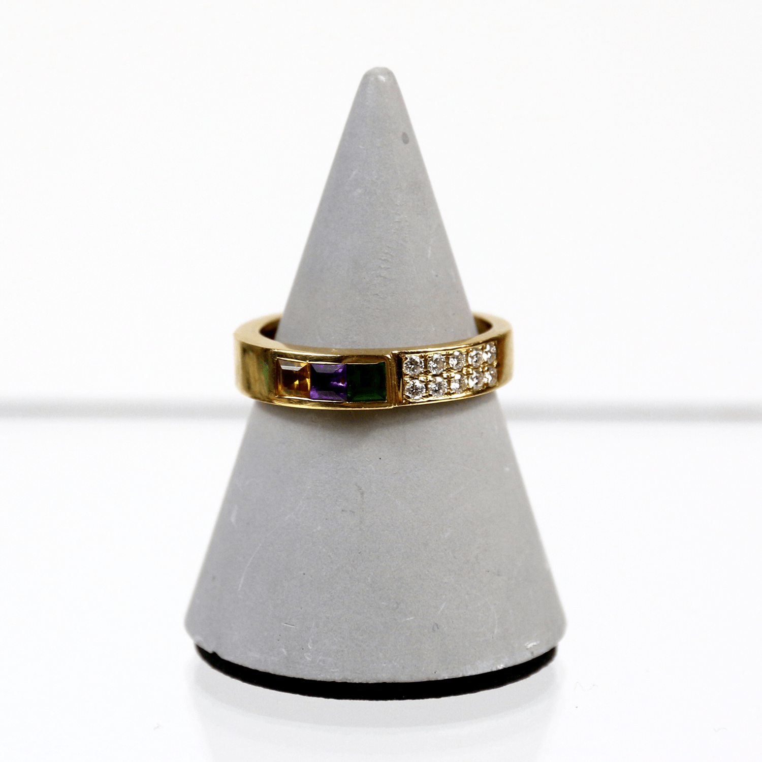Start » Shop » Schmuck » 750/Gelbgold Ring mit verschiedenen Halbedelsteinen und 10 kleinen Brillanten zus. ca. 0,1ct.