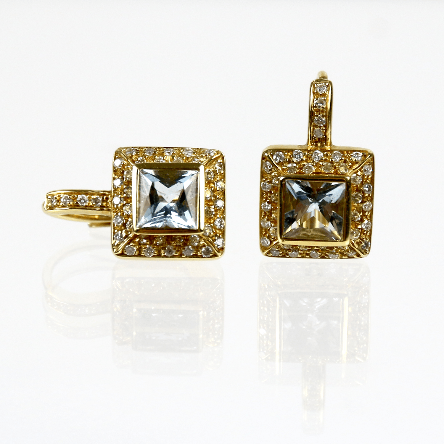 Start » Shop » Schmuck » 750/Ohrhänger Gelbgold mit Diamanten und Aquamarin, Maße ca. 2x1cm