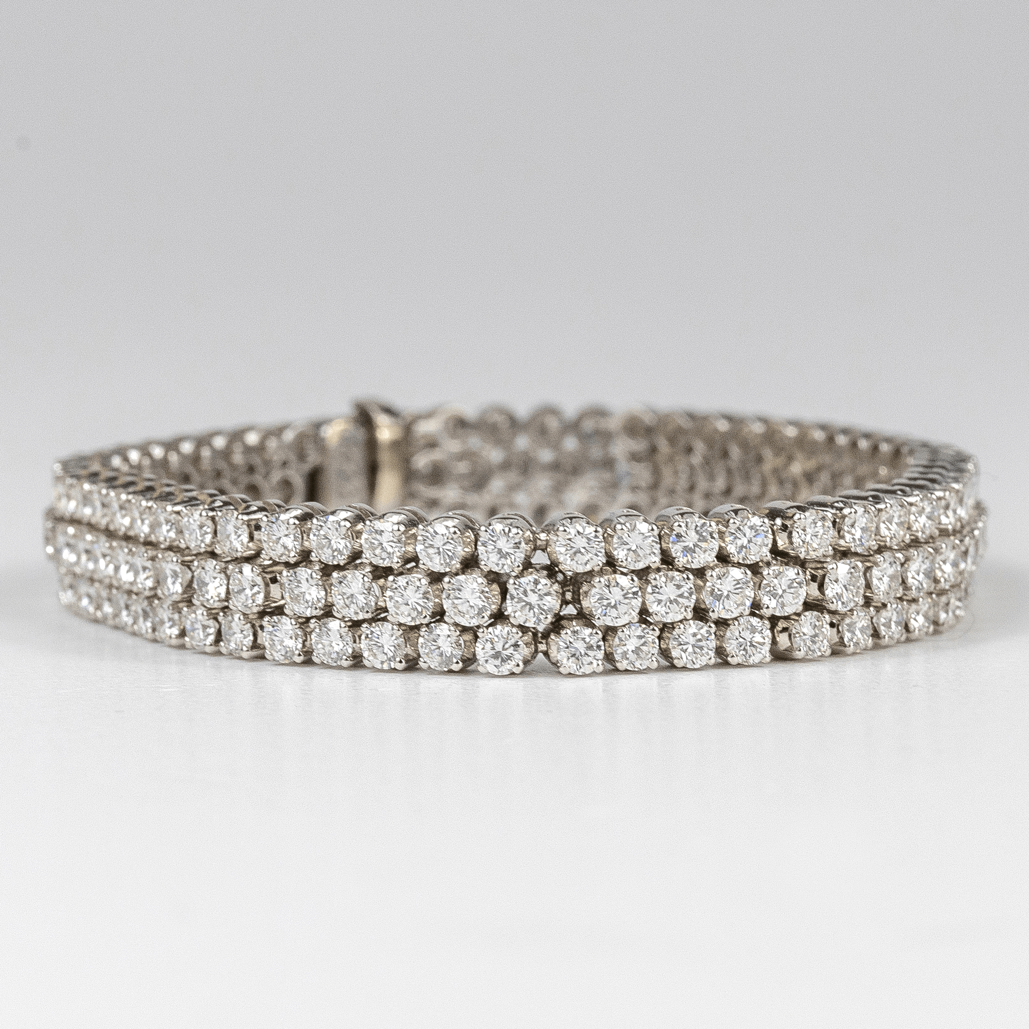 Start » Shop » Schmuck » 750/Weißgold Armband mit Brillanten zus. ca. 13,82ct. (je ca. 0,1ct. (grav.), Vs-Si/G – H/J, Kastenverschluss mit Sicherheitsclip