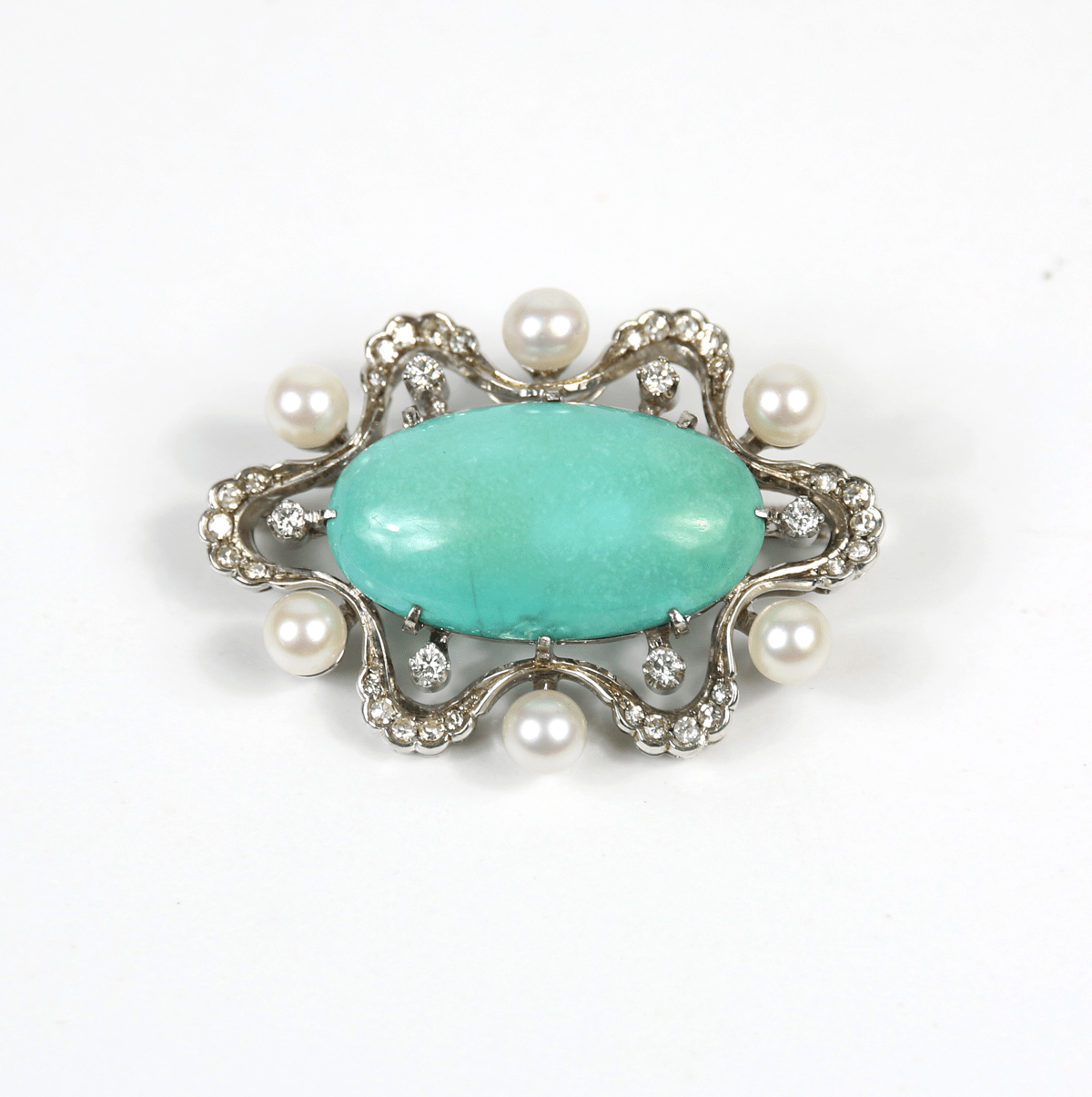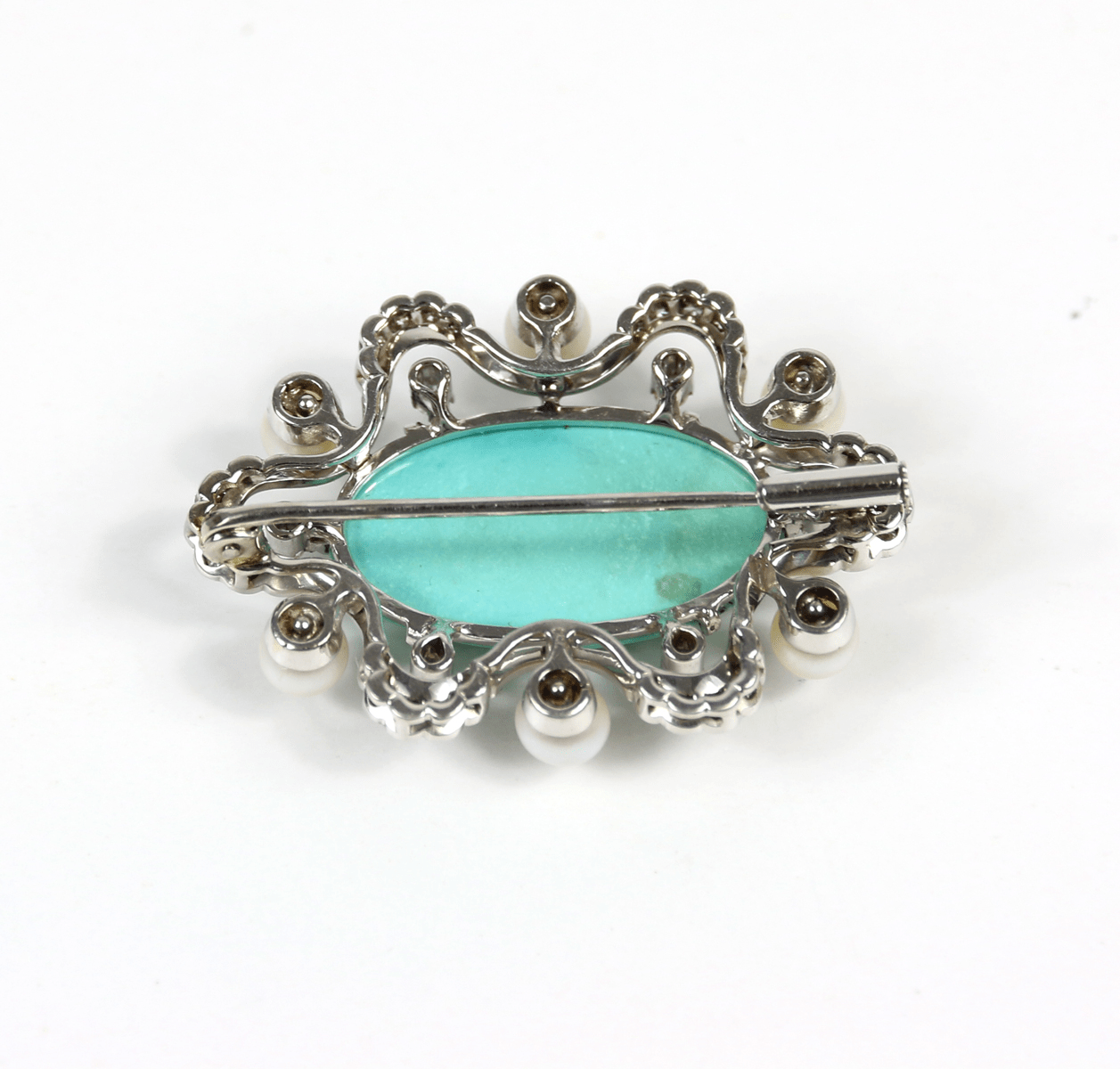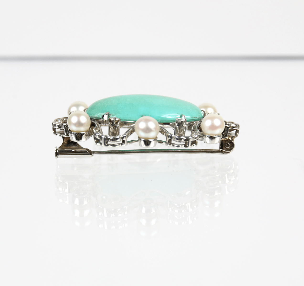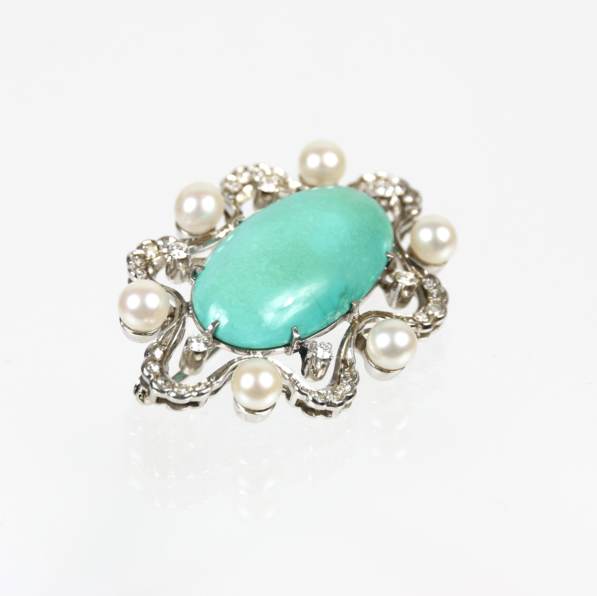 Start » Shop » Schmuck » Broschen » 750/Weißgold Brosche mit Jadeit-Cabochon und Brillanten ca. 0,18ct. und 30 Altschliffdiamanten ca. 0,24ct.