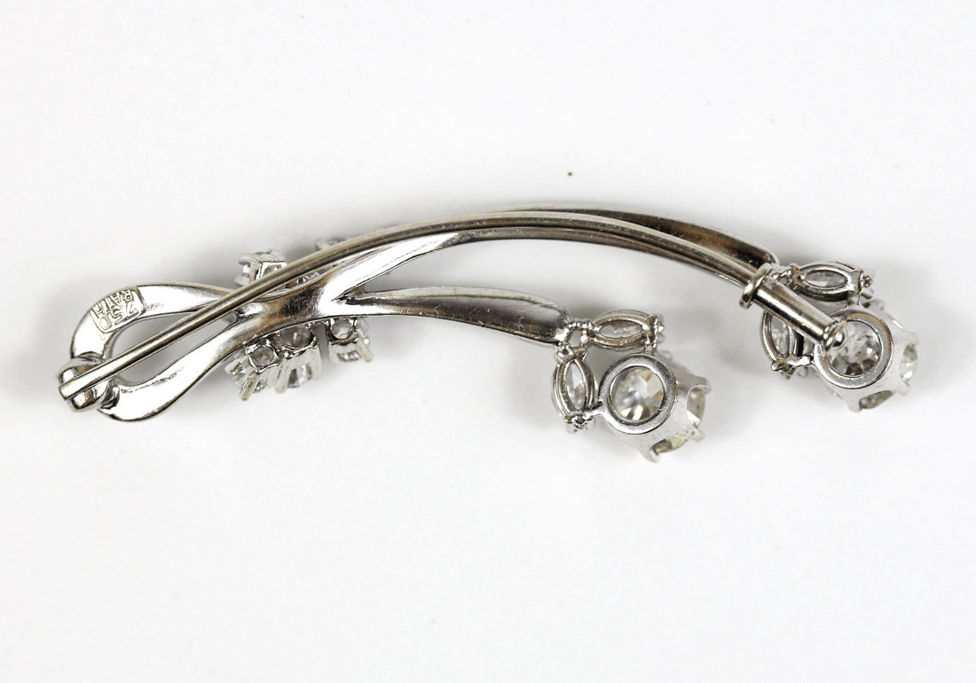 Start » Shop » Schmuck » 750/Weißgold Brosche mit zwei Altschliff-Diamanten zus. ca. 1,7ct. Si2-P1/I, vier Navette-Diamanten und acht Brillanten zus. ca. 0,5ct. Vs/H