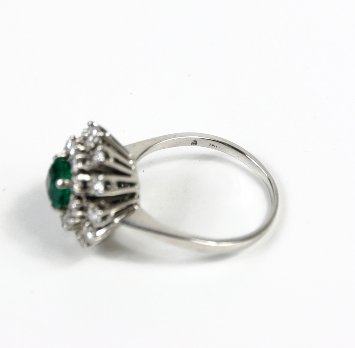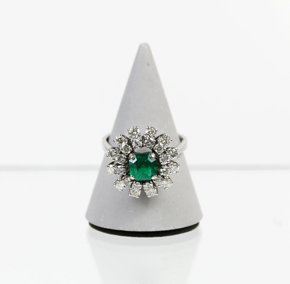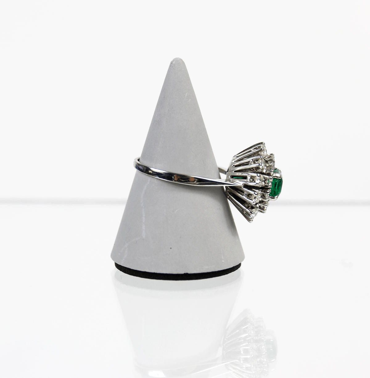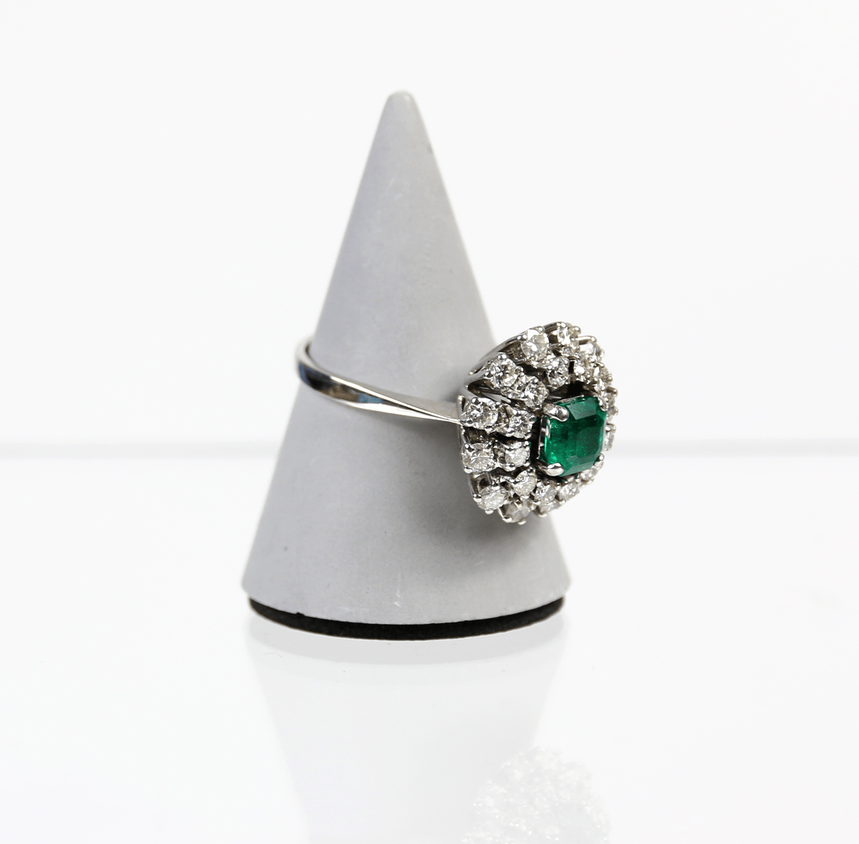 750/Weißgold Ring mit Smaragd-Carrée ca. 1,5ct. und 24 Brillanten zus. ca. 2ct. Vs-Si/H