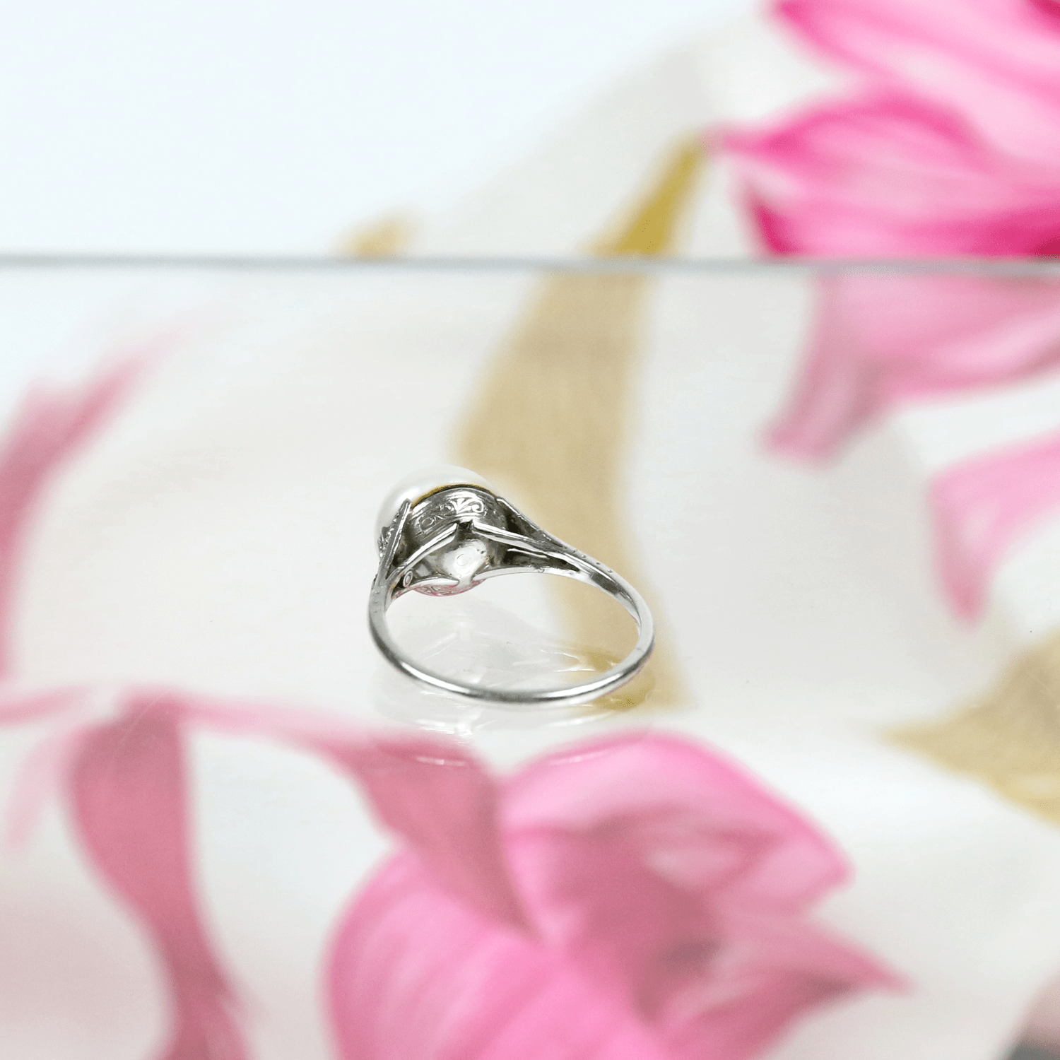 Start » Shop » Schmuck » Ringe » Pt/950 Antiker Ring mit Perle und Diamantsplittern